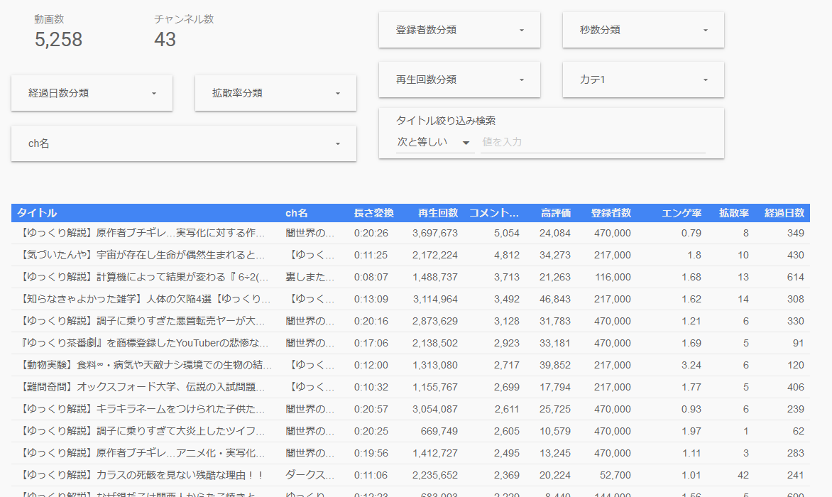 ・検索結果の拡散率10以上の動画数